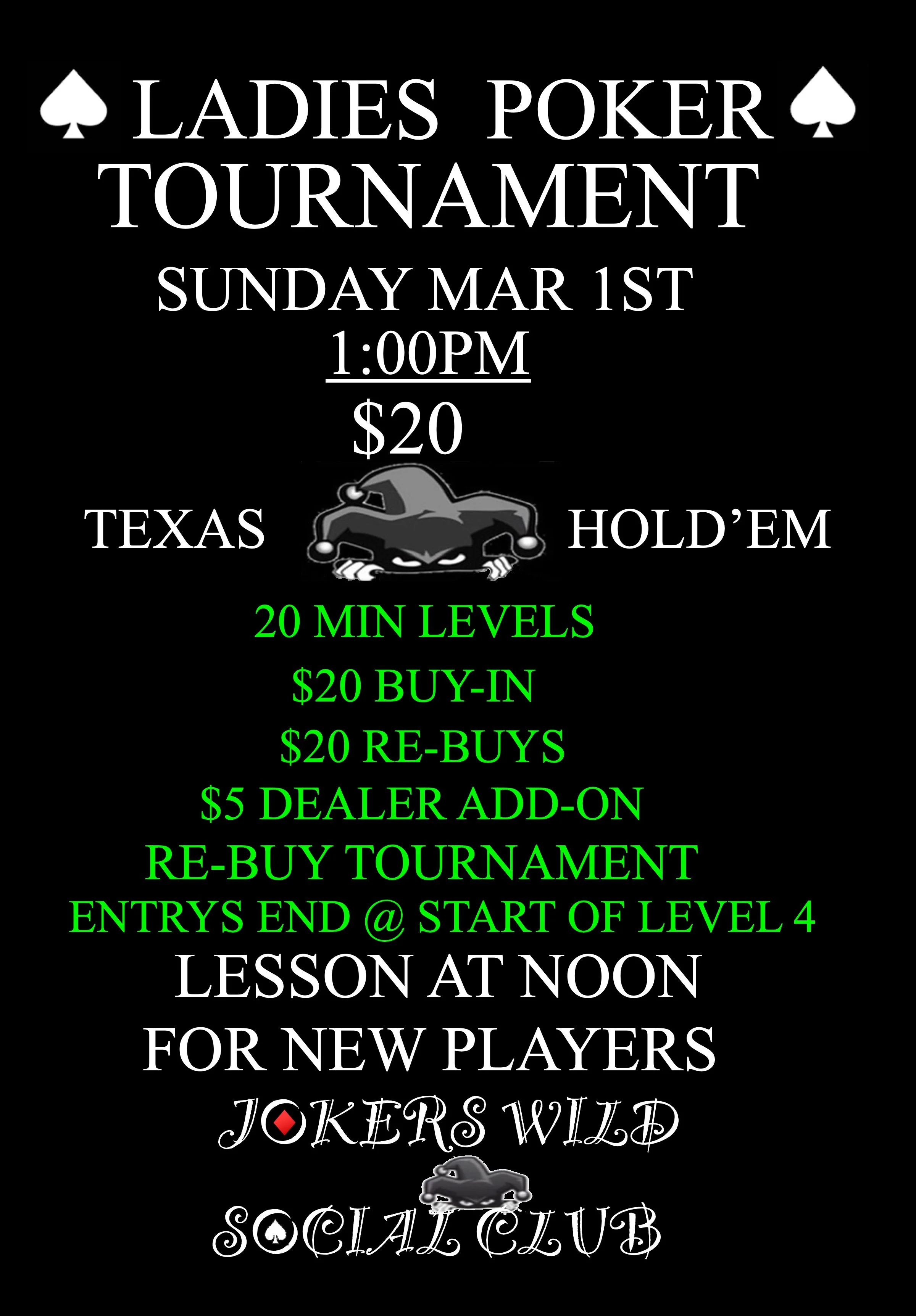 *If you are interested in playing other games or limits, please reach out to us to schedule a game.