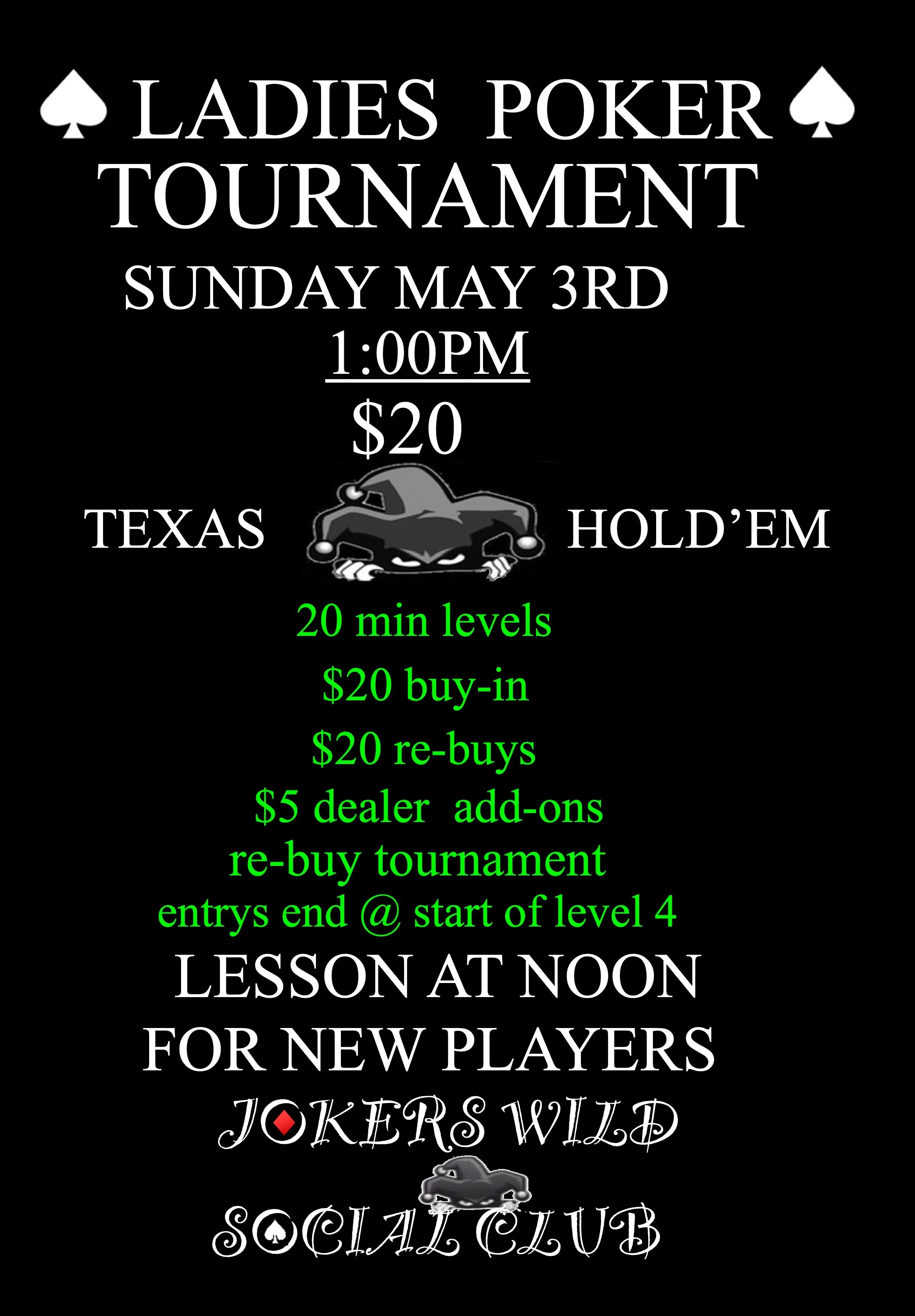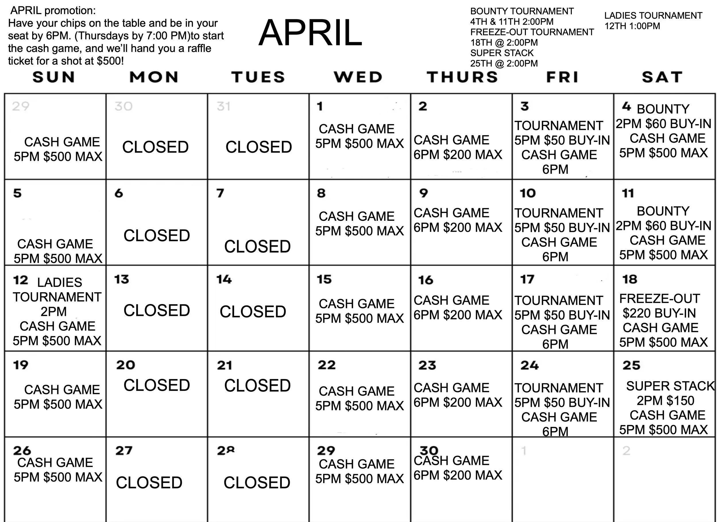 *If you are interested in playing other games or limits, please reach out to us to schedule a game.