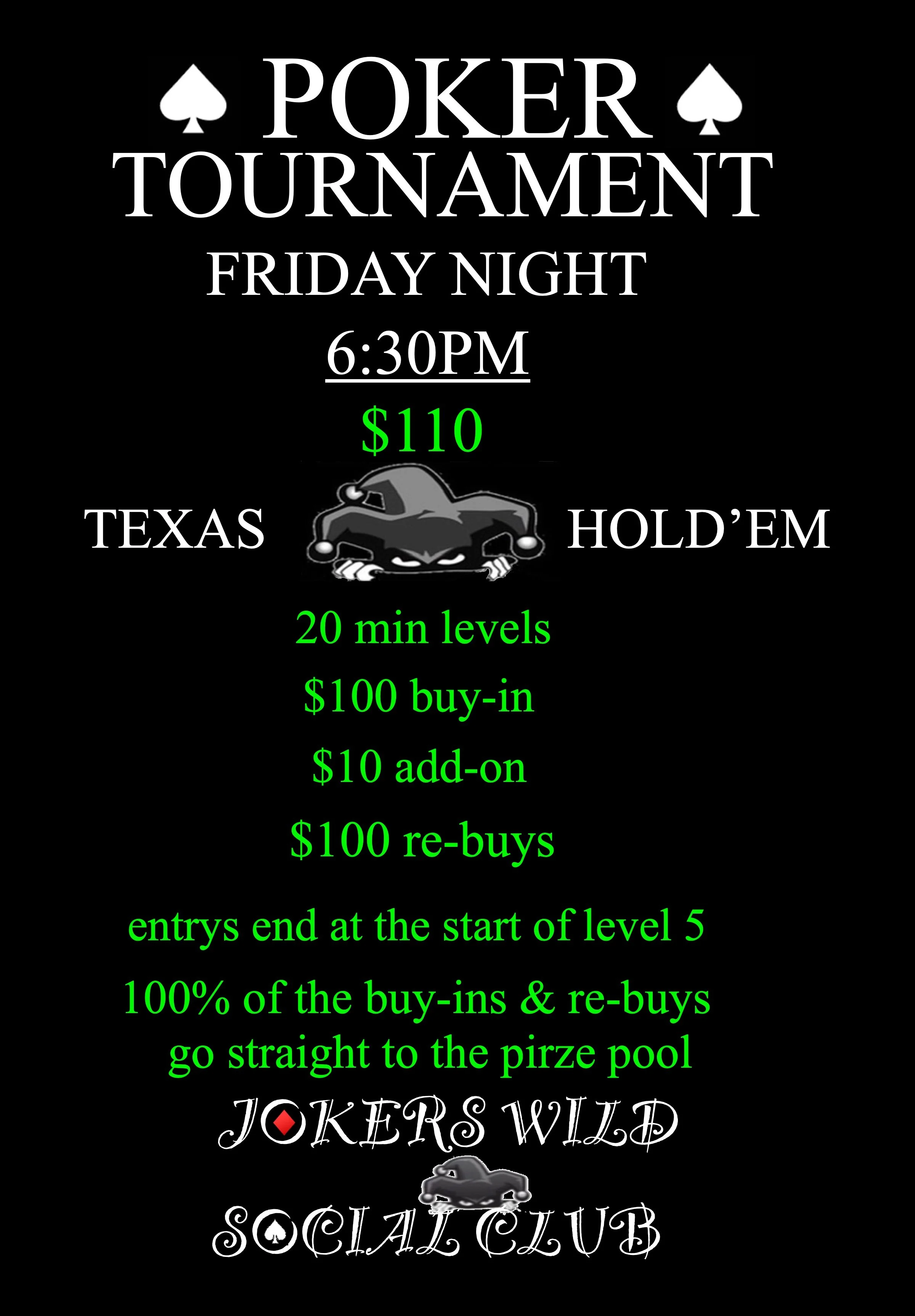 We have five (5) poker tables for cash games and tournaments.